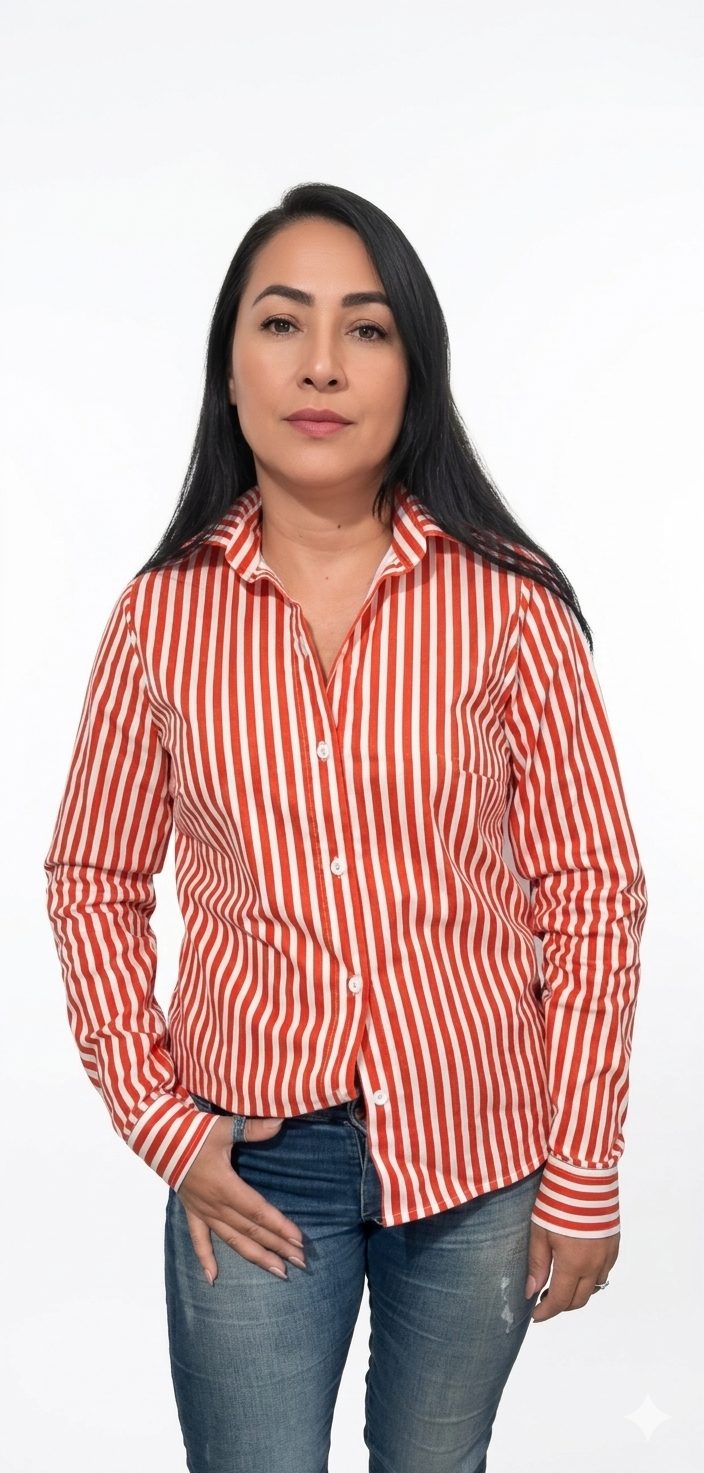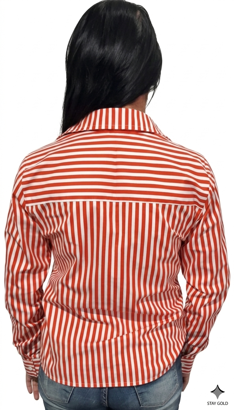 Camisa alfaiataria com listras largas ,com botões na frente, colorinho ,modelo atemporal