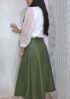Saia midi evase alfaiataria com fecho de ziper invisível atrás .