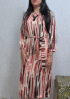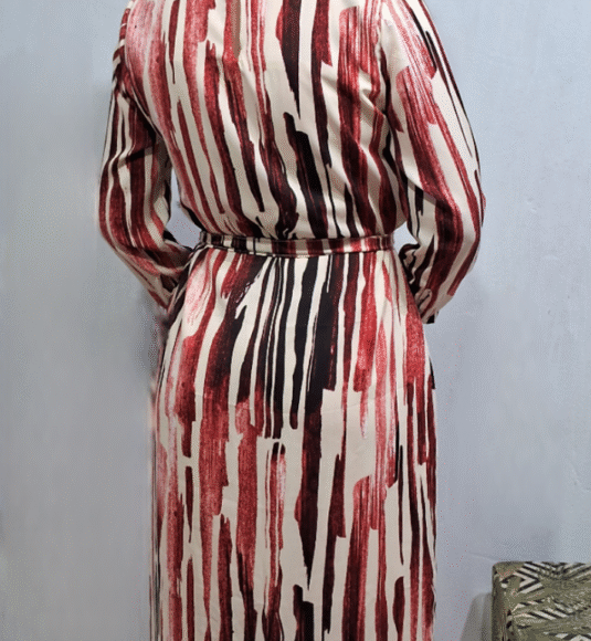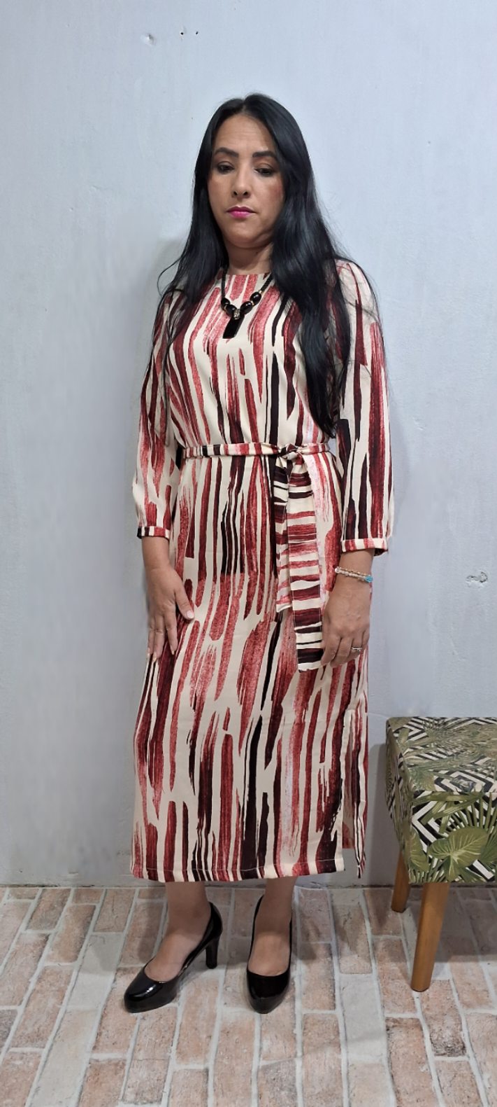 Chemise modelo casual corte evasê com mangas três quartos comprimento midi com botão atrás no decote , e vem com cinto do próprio tecido, forrado para inibir transparência.