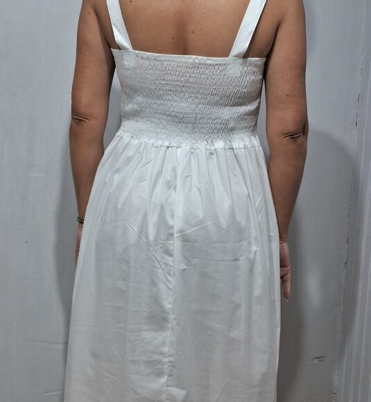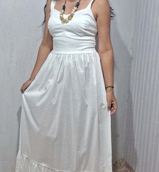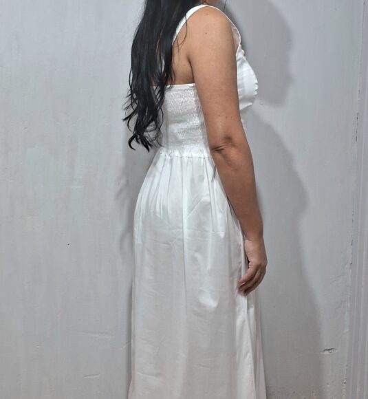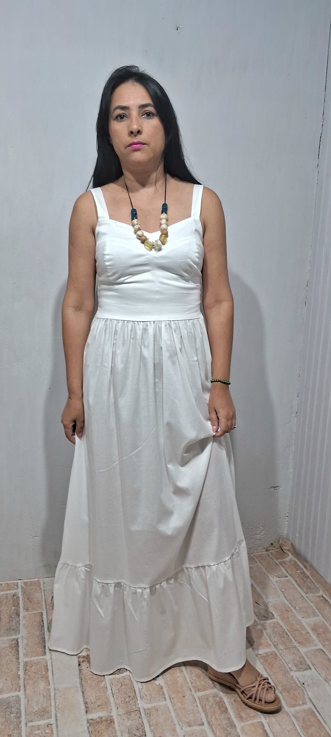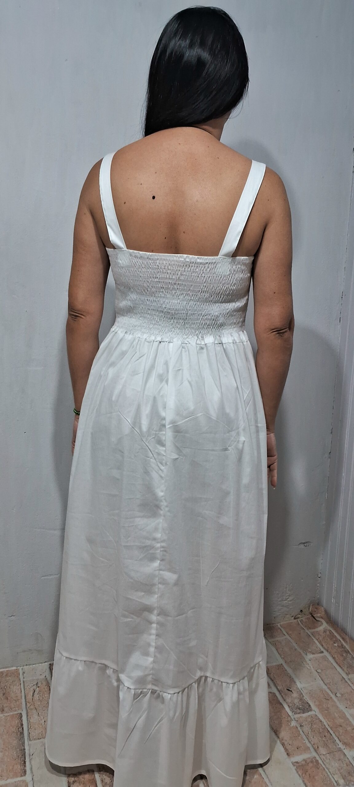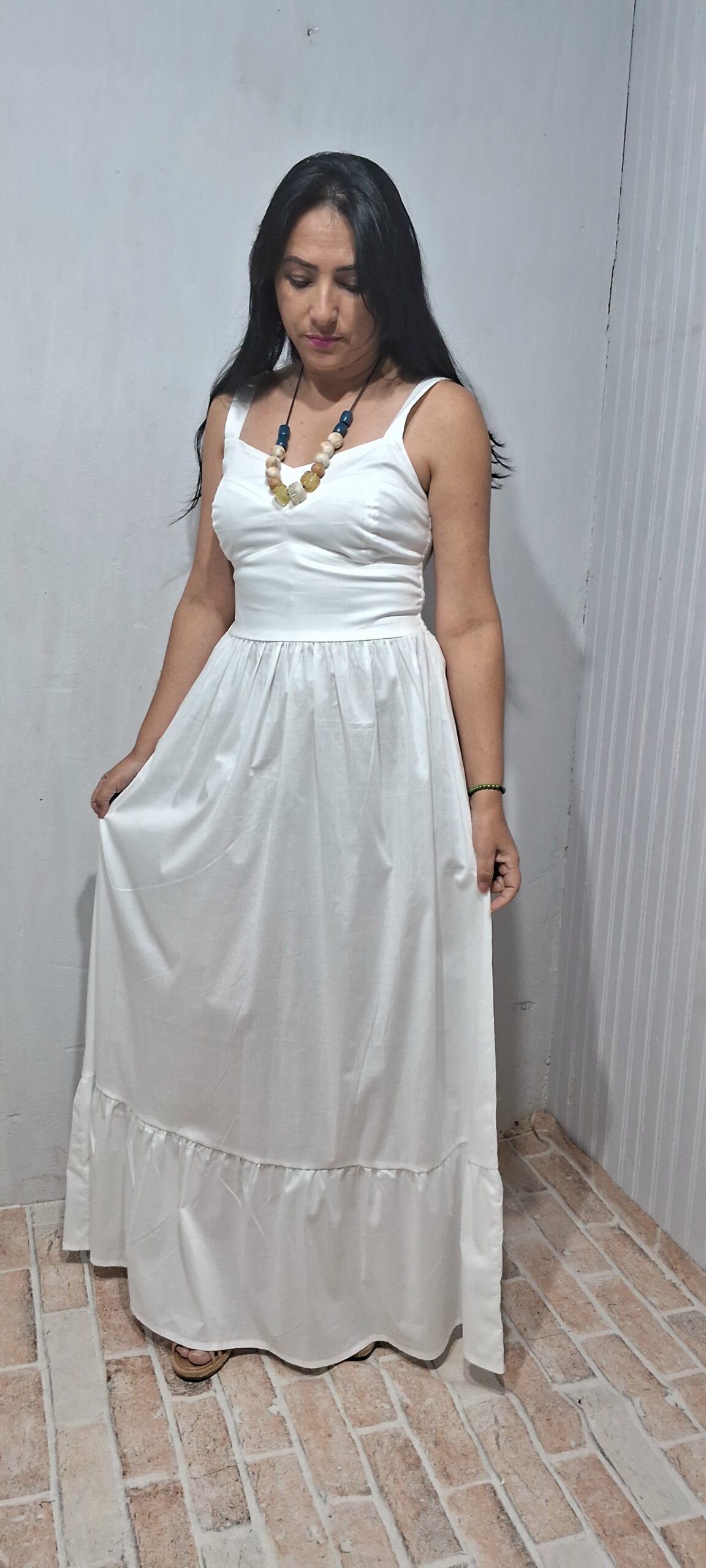 vestido longo com alças largas detalhe nas costas com lastex proporcionando mais conforto e ajustando melhor ao corpo.